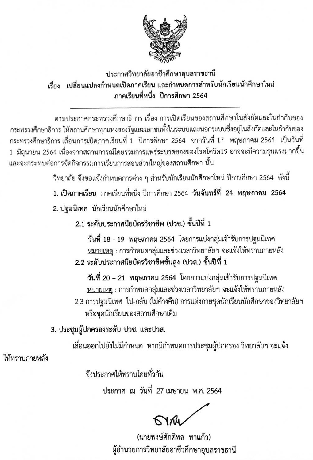 กำหนดเปิดและปิดภาคเรียน ปีการศึกษา 2564 กำหนดการลงทะเบียน ภาคเรียนที่ 1/2564