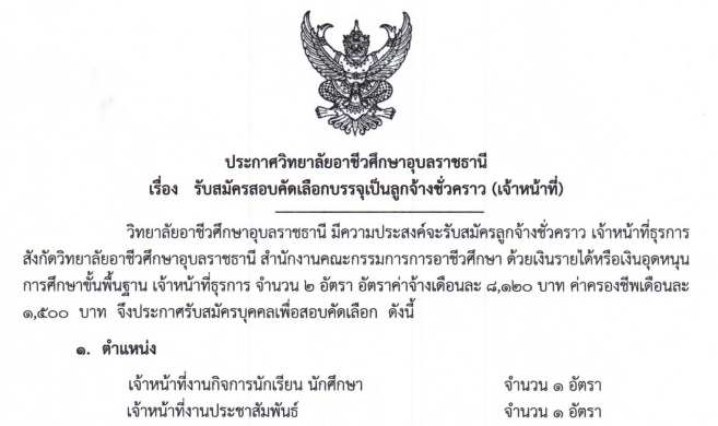 ประกาศรับสมัครสอบคัดเลือกบรรจุเป็นลูกจ้างชั่วคราว(เจ้าหน้าที่งานกิจการนักเรียนฯ งานประชาสัมพันธ์)